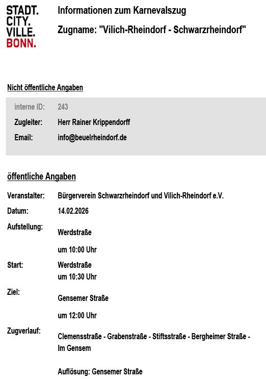 Zugverlauf Karnevalszug 2026 am 14.02.2026